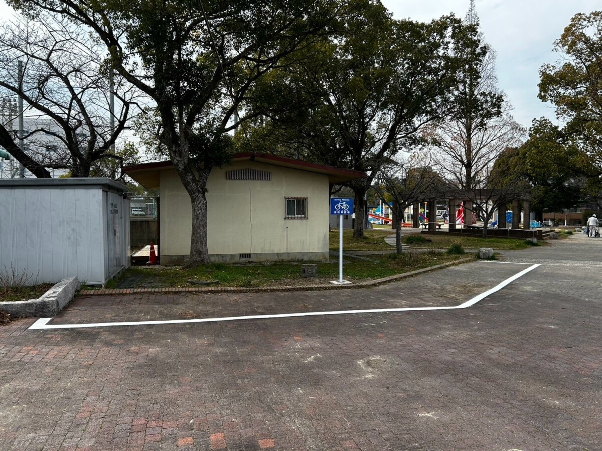 公園には新たに駐輪場も設けられました。園内に2カ所に設置されています。