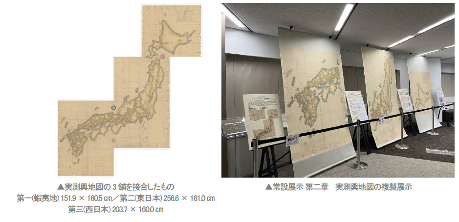 ゼンリンミュージアムでは、保全のため原本の展示はなく、常設展示第2章にて実測輿地図の複製が展示されています。