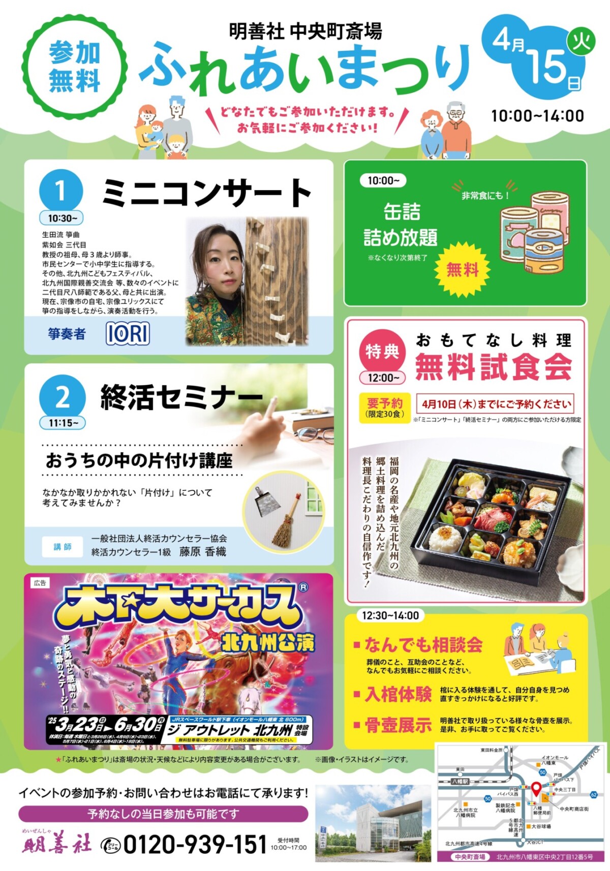 2025年4月15日(火)10:00~14:00、明善社 中央町斎場にて「ふれあいまつり」を開催いたします。