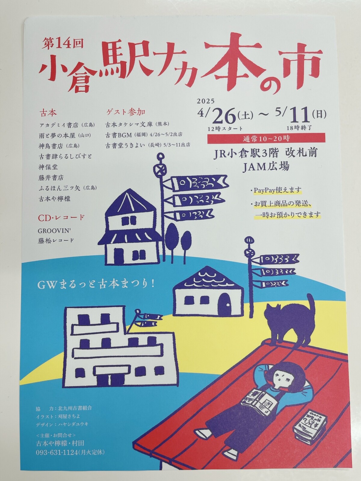 ほかにも、ゲスト参加として「古本タケシマ文庫」(熊本)、「古書BGM」(福岡)4/26~5/2出店、「古書堂うきよい」(長崎)5/3~11出店となっています。