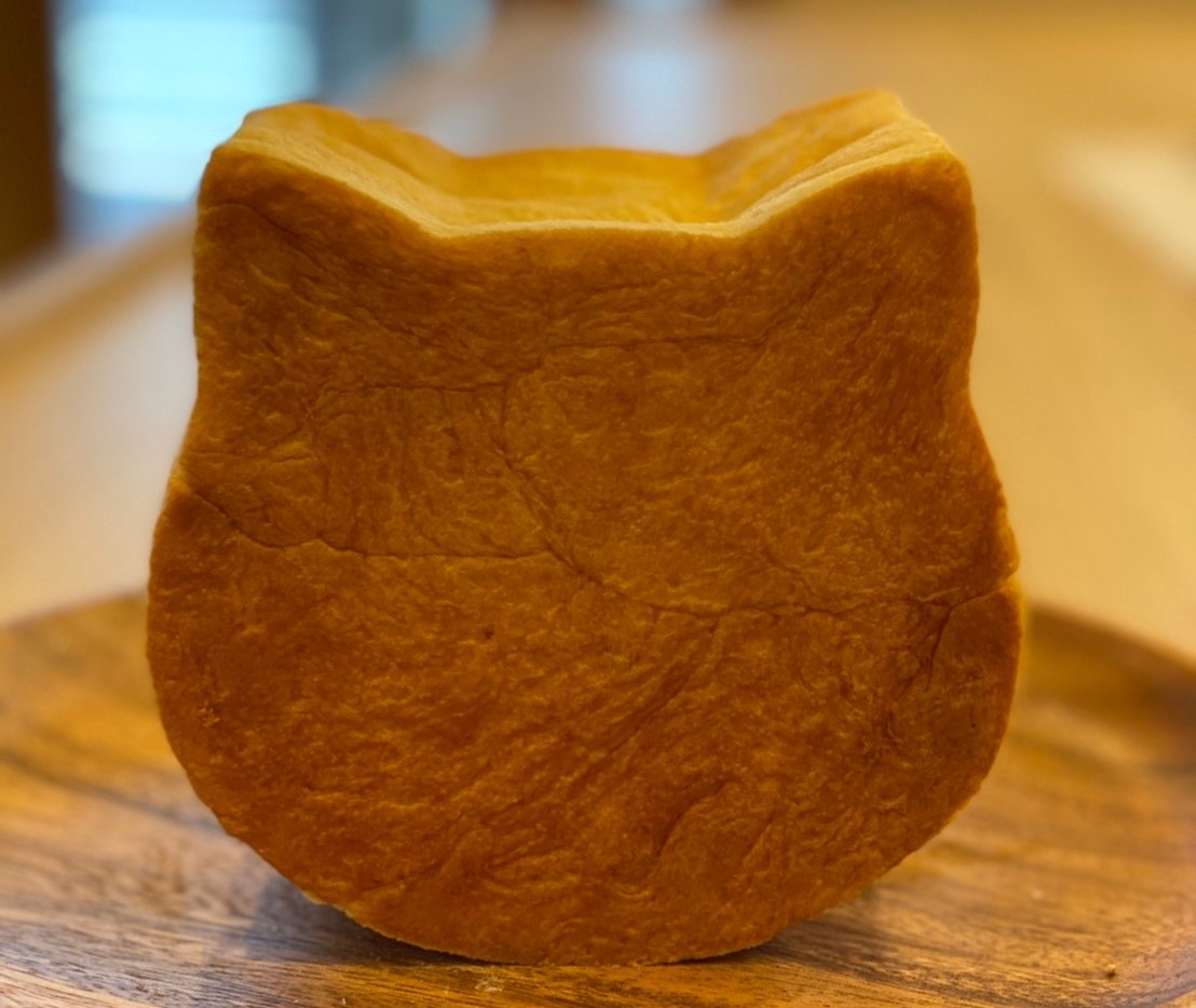 猫の形をした「ねこ食パン」も、店頭に並ぶとすぐに売り切れてしまう人気商品。「Bakery まほろば」のロゴに描かれている桜の花びらを持った猫のイラストをイメージして作ったそう。ちなみに猫が桜の花びらを持っている理由は、お店のすぐそばに「さくら通り」があるからだと教えてくれました。