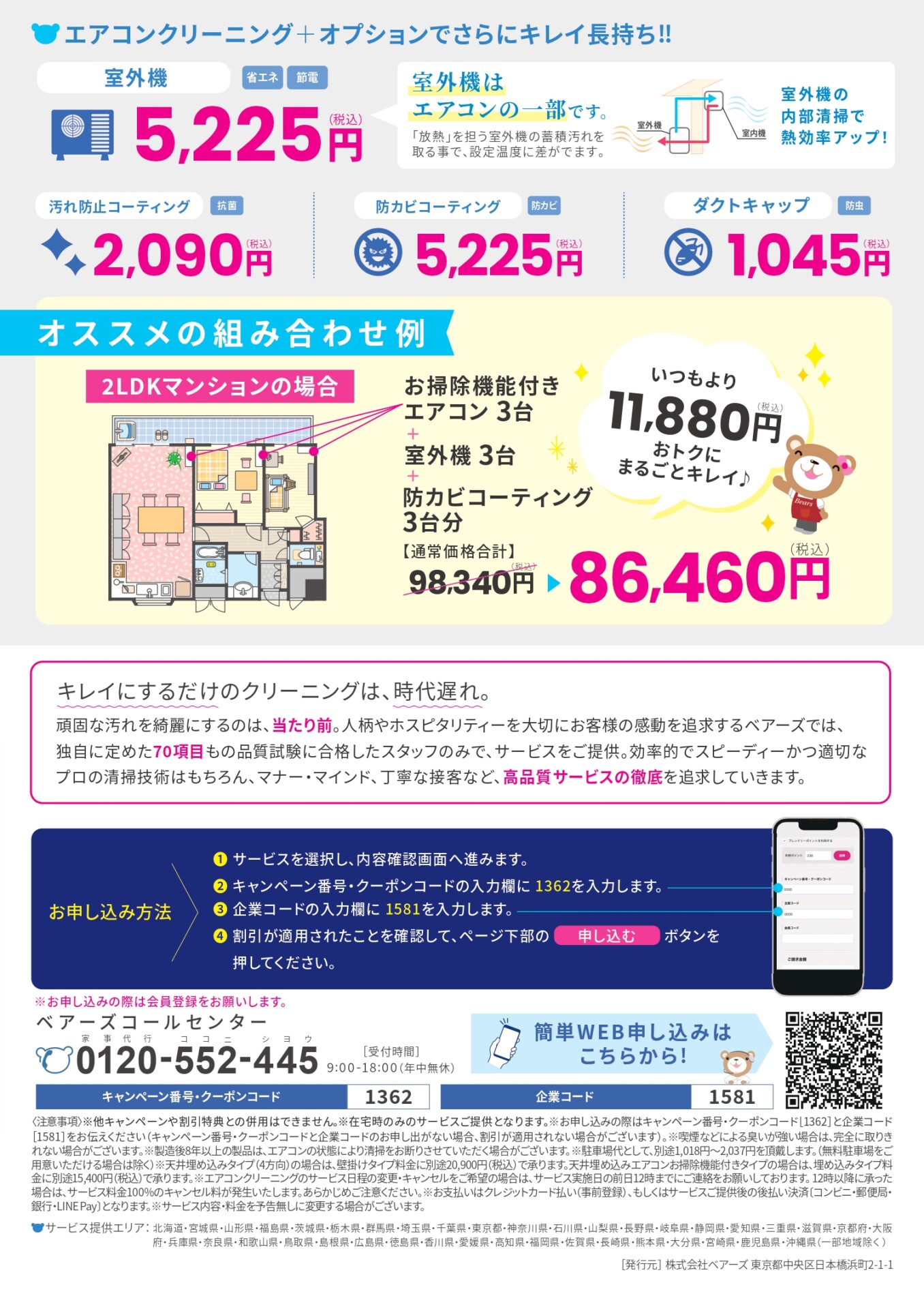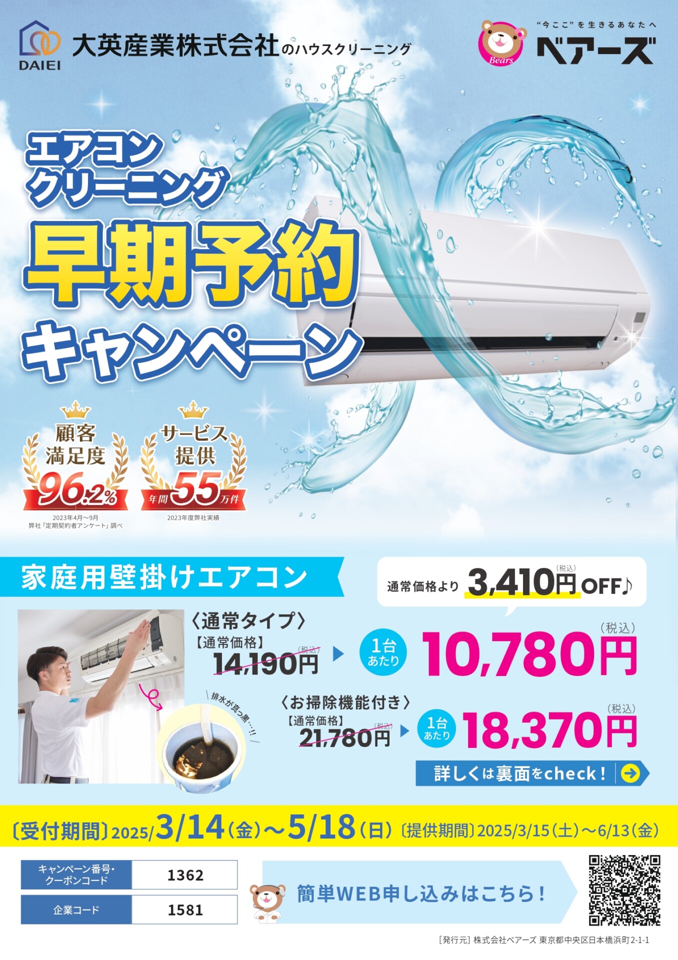 エアコンクリーニング<早期予約キャンペーン>/大英産業のハウスクリーニングWITHベアーズ