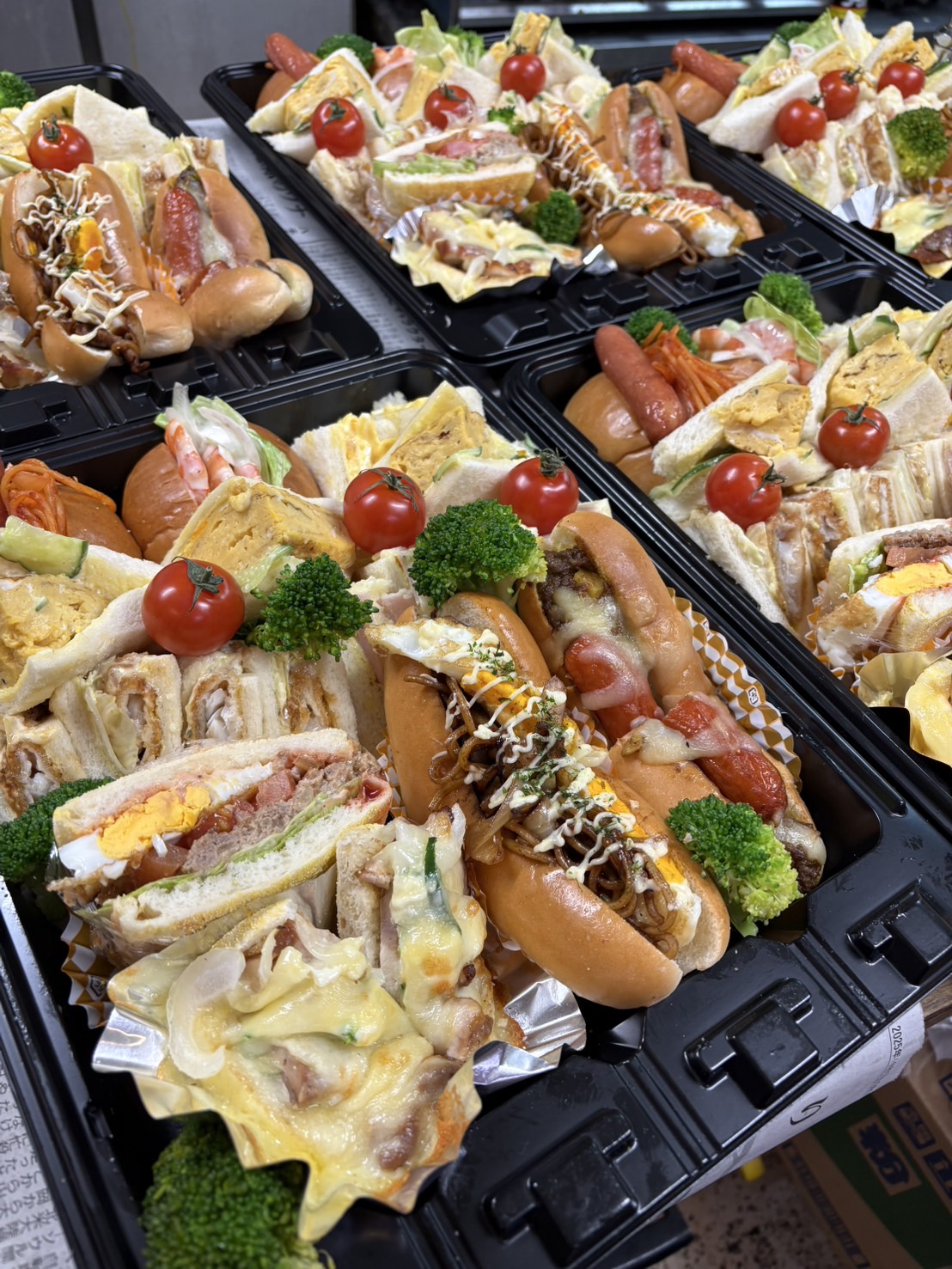 彩り豊かで食べ応え抜群の特製サンドイッチで、イベントやランチタイムをもっと楽しくしませんか?こだわりの具材をたっぷり挟んだサンドイッチや、ジューシーなホットドッグ、チーズたっぷりのグラタン風パンなど、バラエティ豊かなラインナップ!新鮮な野菜とともに、見た目も華やかに仕上げました。会議や懇親会、ピクニックにぴったりです!オーダー受付中!詳細はお気軽にお問い合わせください。