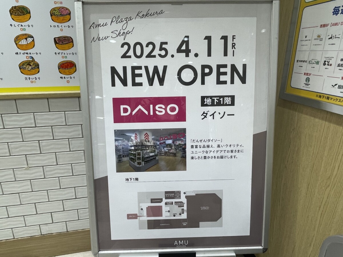 「DAISO アミュプラザ小倉店」は、3月にオープンした「ステーキハウスとみおか・いなりとみおか」のある西館地下1階にあります。