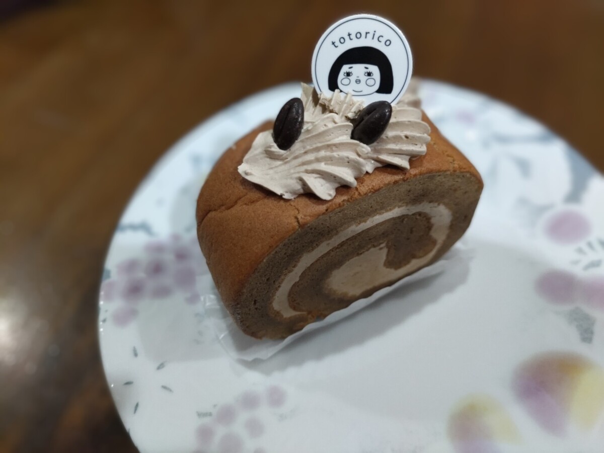 カフェモカロール(430円)は、しっかり目のコーヒー風味の生地でコーヒークリームを渦巻き状に巻いたロールケーキです。