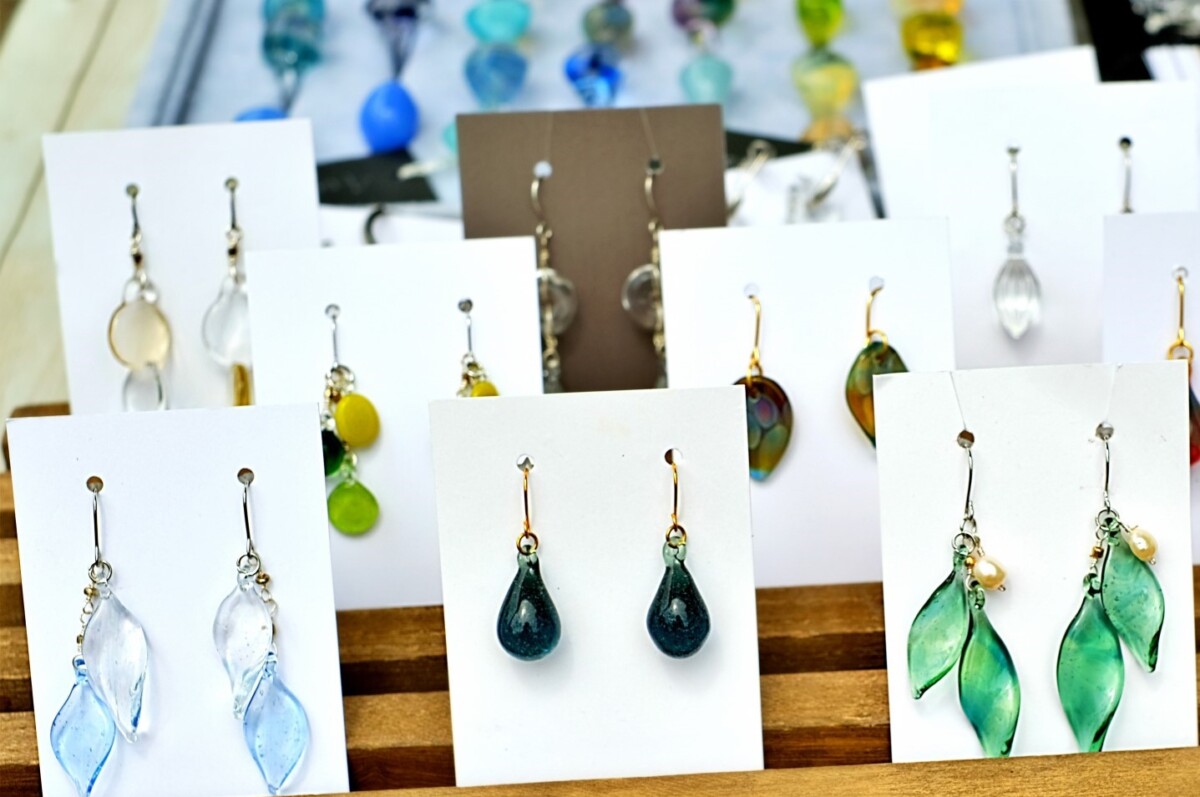 UVレジンやパールなどを使用した<オリジナルハンドメイドアクセサリー>、お財布などの<革製品>、さまざまな柄の布を使用した<バックや布小物>、<キャンドル>などの多種多様なハンドメイド作品が登場。なかには一点物のアイテムもあるのだとか。