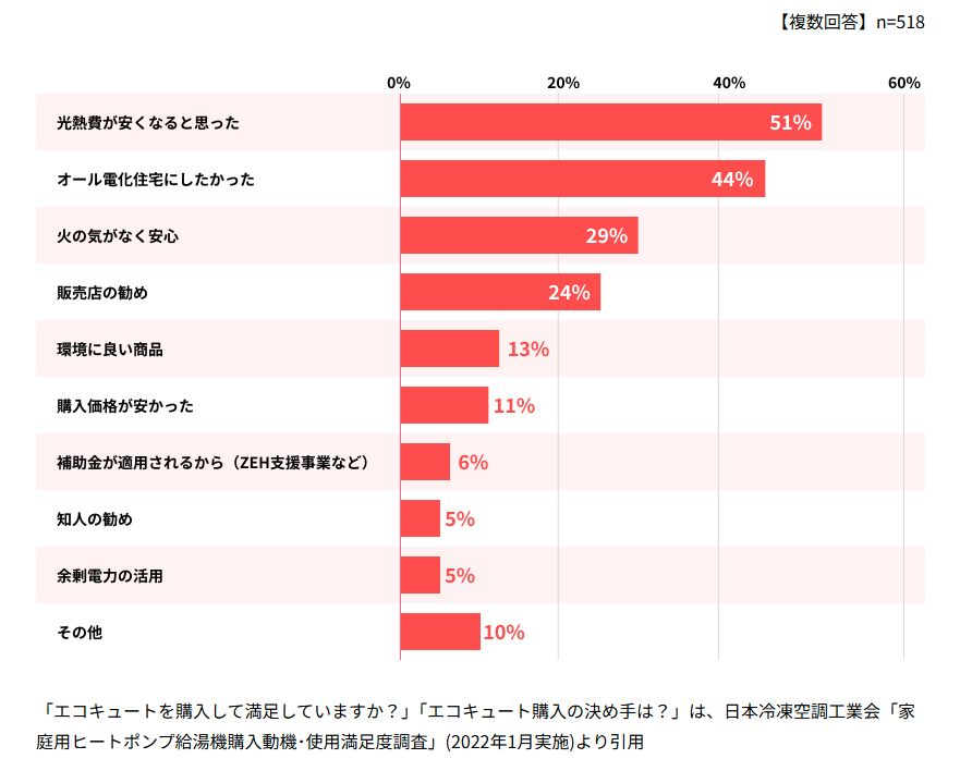 購入の決め手は、「光熱費が安くなると思った」「オール電化住宅にしたかった」という理由が上位になっているのも、消費者はオール電化にすることで安くなるといったイメージを抱いていることが分かります。