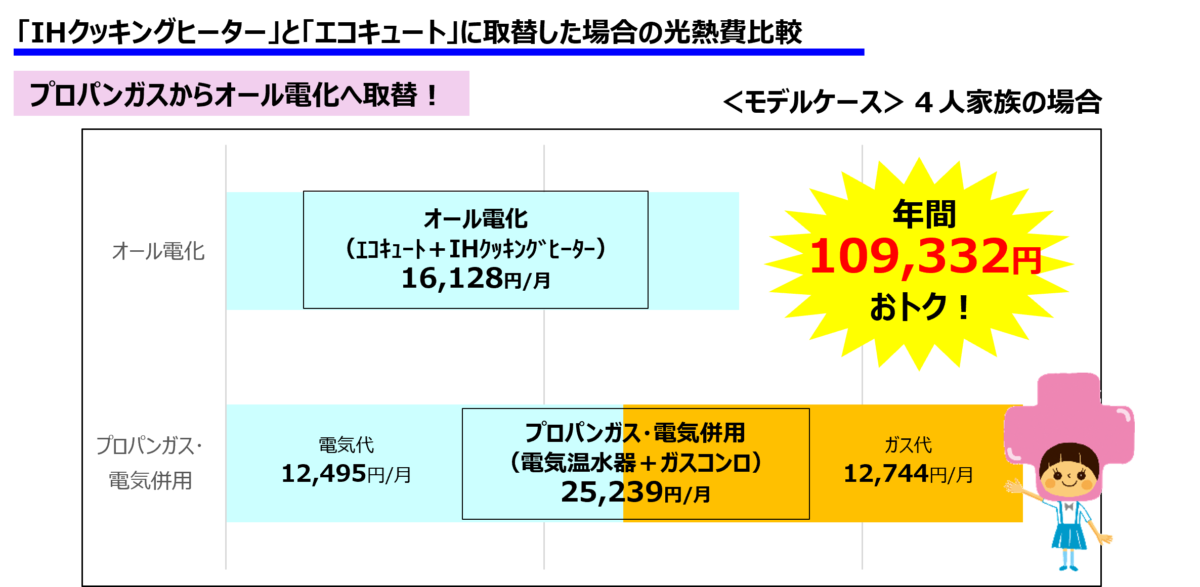 次は、プロパンガス・電気併用の4人家族がオール電化へ取り替えた場合を比較してみます。