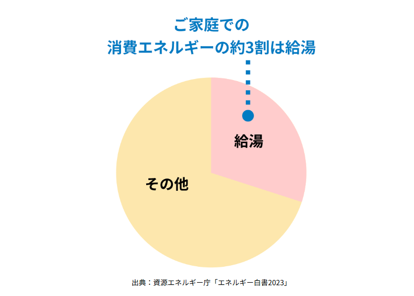実は、家庭で消費されるエネルギーの約3割は給湯に使われており、効率のよい給湯器を使うことが省エネにつながります。