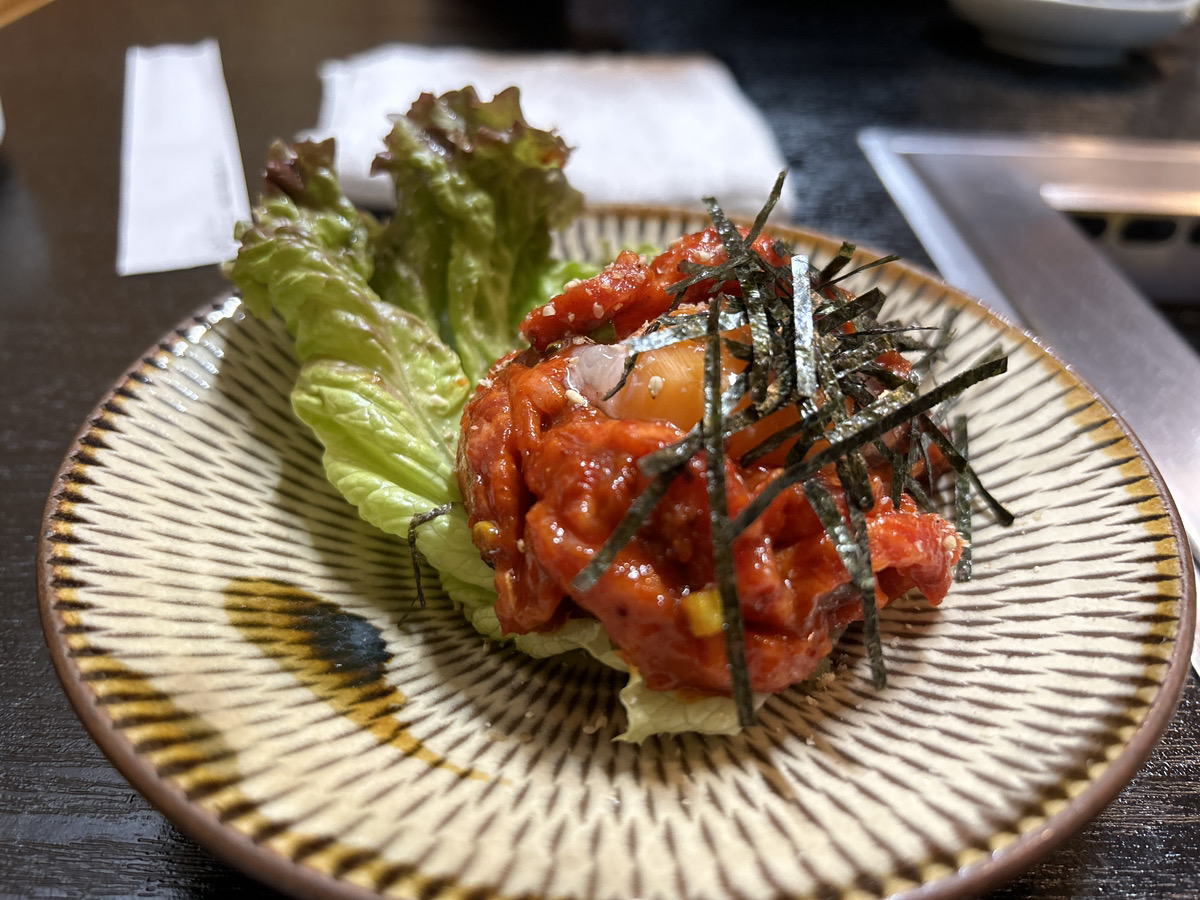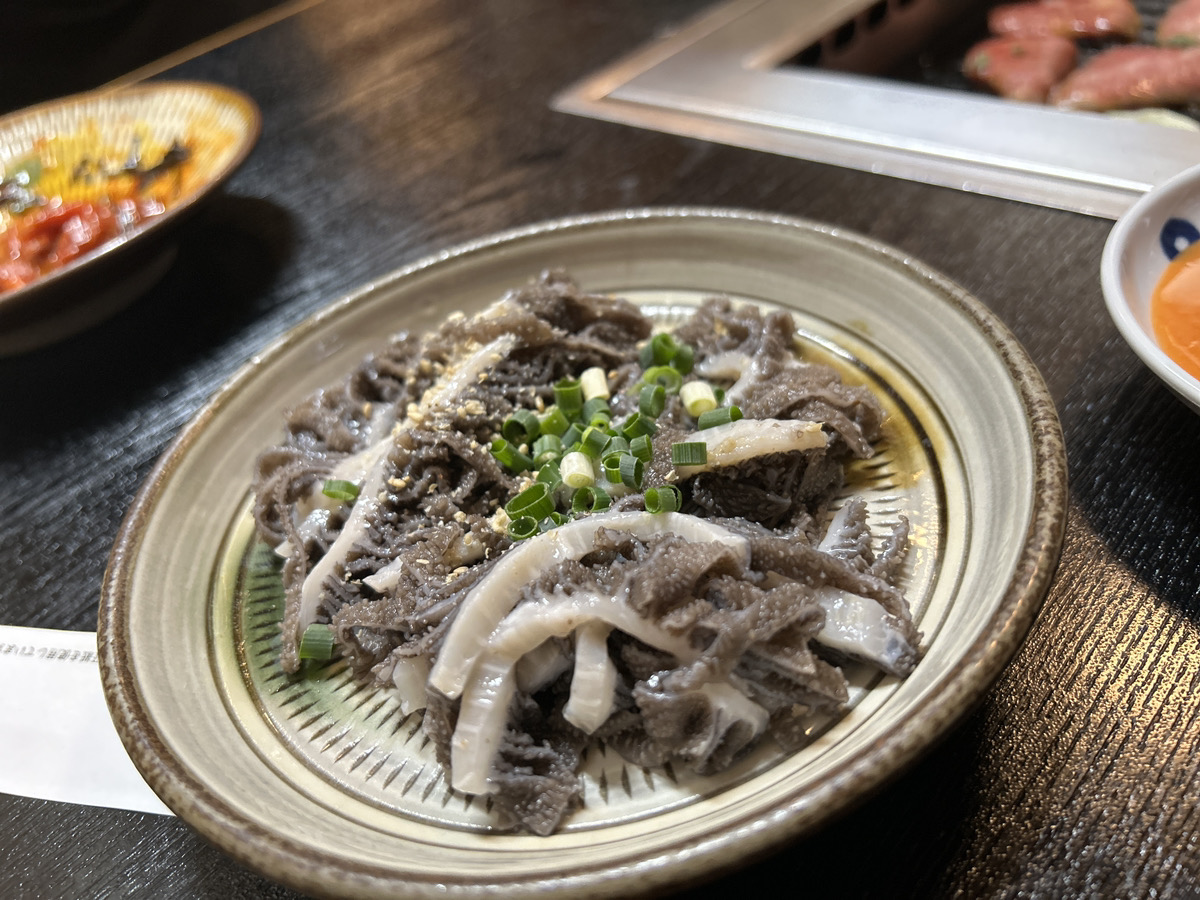焼肉以外にも、センマイ刺し(800円)とユッケ(1300円)を注文しました。
