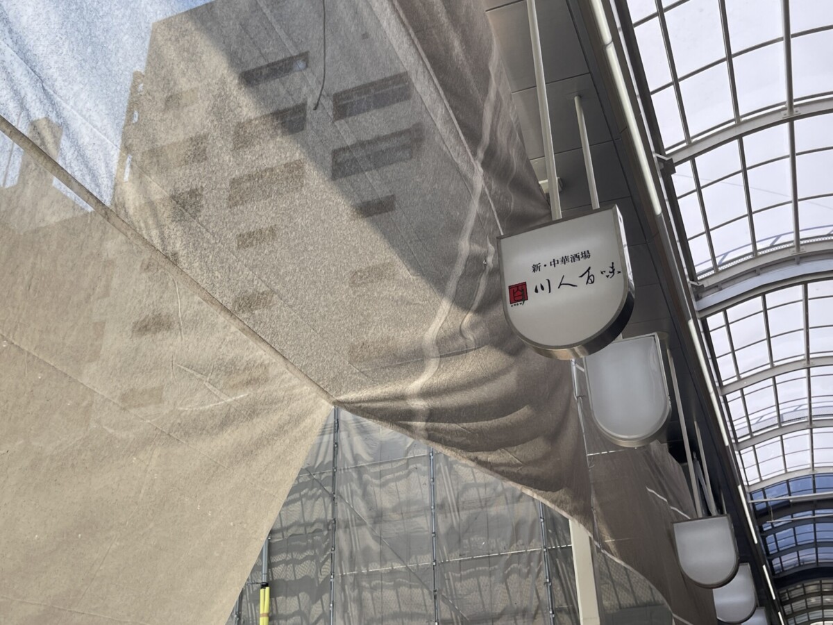 ふと上を見上げると、被災した「川人百味 魚町店」さんの看板が目に止まり、なんとも言えない物悲しい気持ちになりました。鳥町食道街があったことを忘れないようにしていきたいですね。