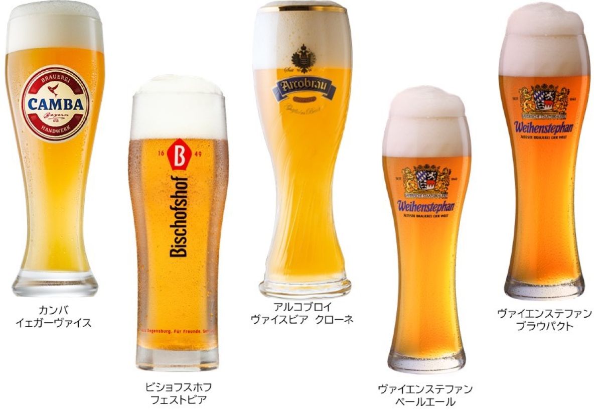 苦みの少ないスッキリしたラガータイプのビール「ビショフスホフ オリジナルフェストビア」や、柑橘系の香りと滑らかな口当たりを楽しめるビール「アルコブロイ ヴァイスビアクローネ」などが登場します。