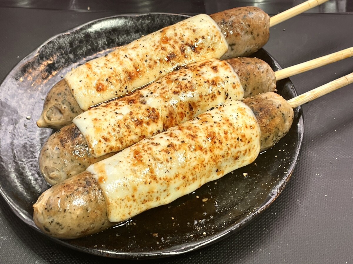 串スタイルの「炙りチーズ黒豚生フランク」は、パリッと焼いた肉厚ジューシーなフランクに炙りチーズと特製ダレ、ブラックペッパーで仕上げています。