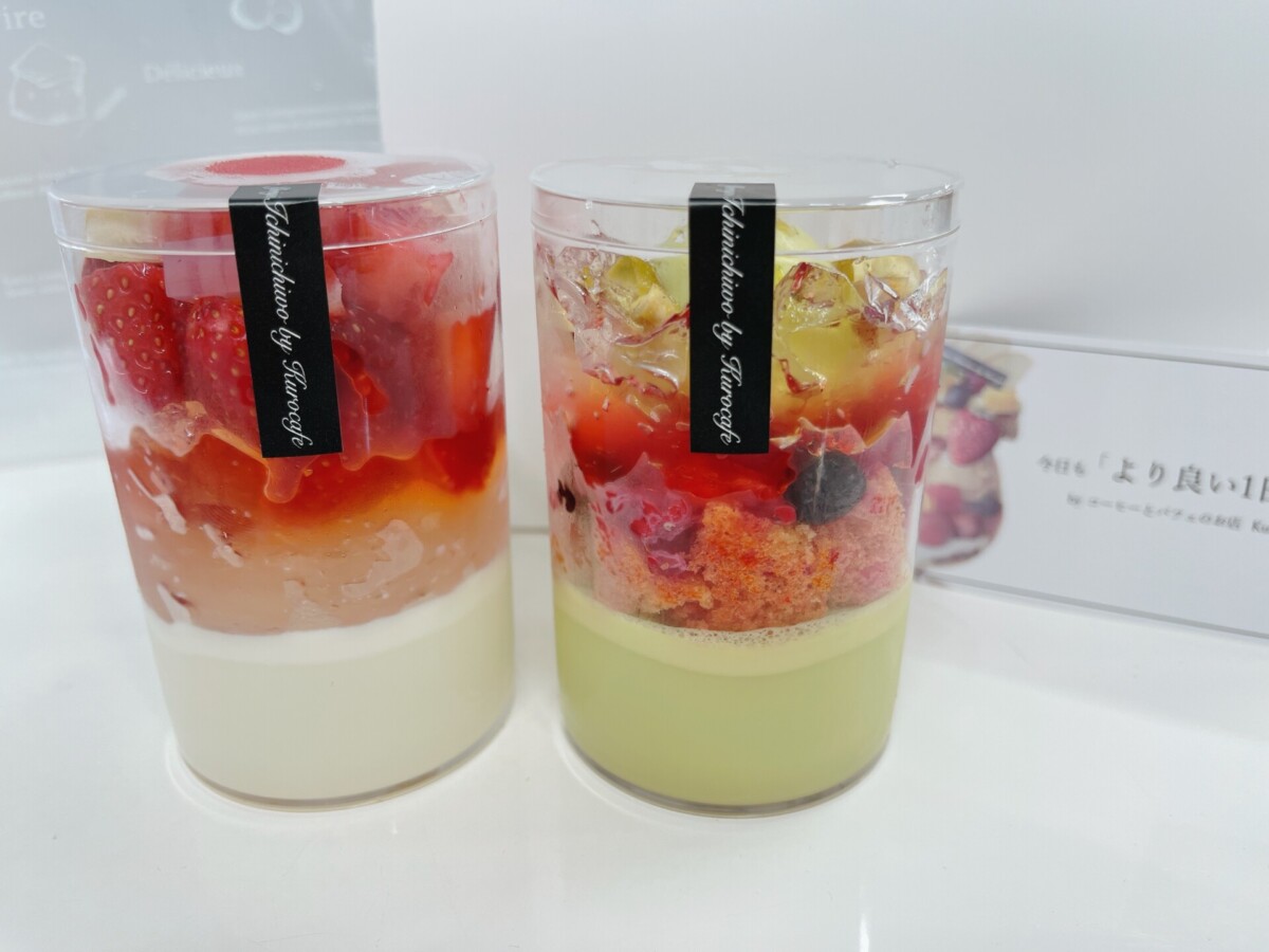 今回の出店では、焼き菓子やテイクアウト商品「パフェヴェリーヌ」がラインナップ。お店の方におすすめを伺い、「いちごのヴェリーヌ」と「ピスタチオベリー」を購入。見た目も華やかで食べるのがもったいないくらいです。