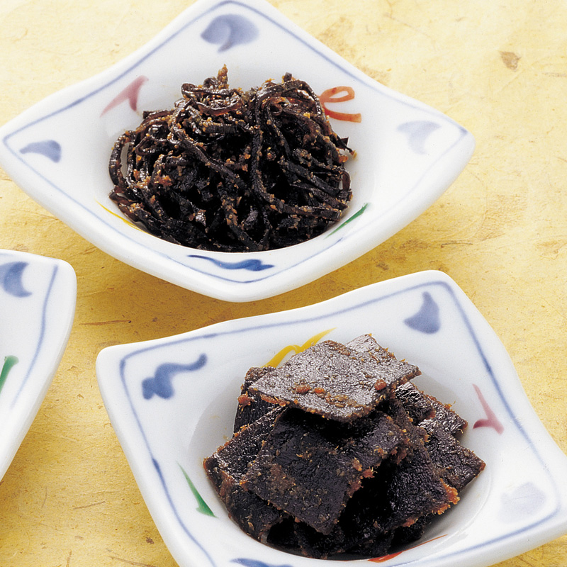 北海道道南の尾札部・小安で採れた風味のいい山出し真昆布を厳選して、時間をかけて煮込んだ佃煮昆布。