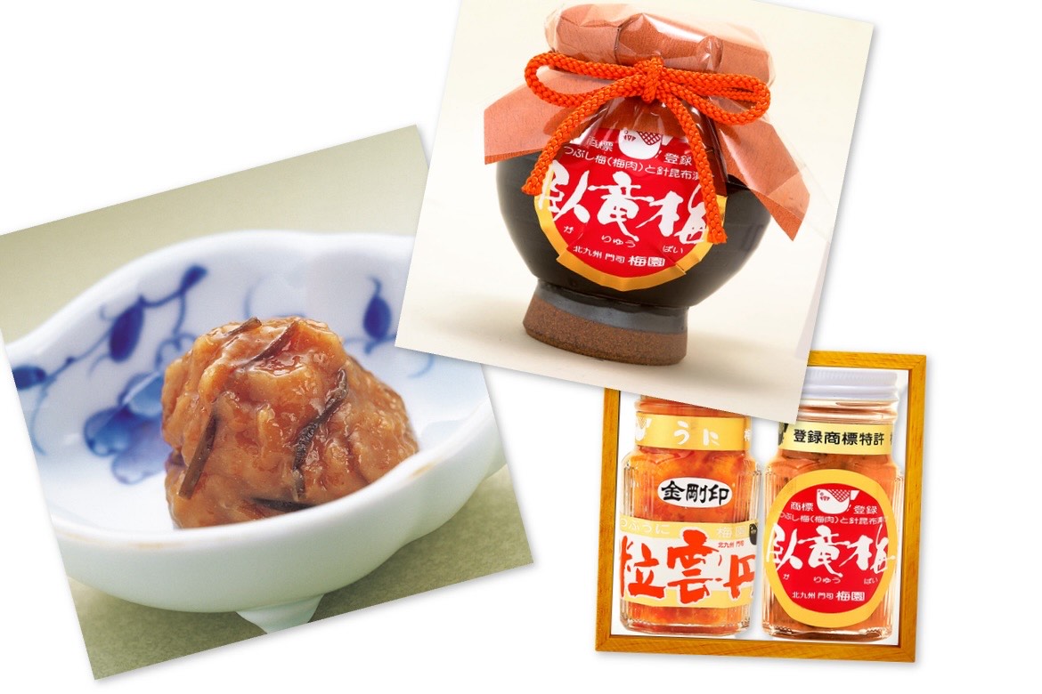 梅園では、和歌山県特産の香り高い南高梅の果肉をつぶし、北海道道南の最高級真昆布を漬け合わせ食べやすくした臥竜梅を用意しています。