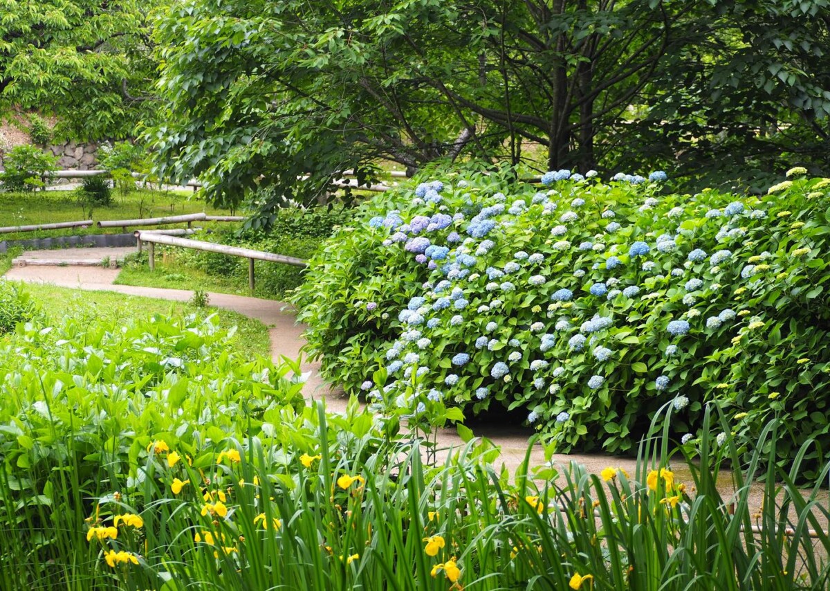 到津の森公園では、6月1日~6月30日の期間で到津あじさいフェアを開催中。「あじさいの小径」に植樹した1500株や、観覧車周辺など園内各所のアジサイを楽しめます。