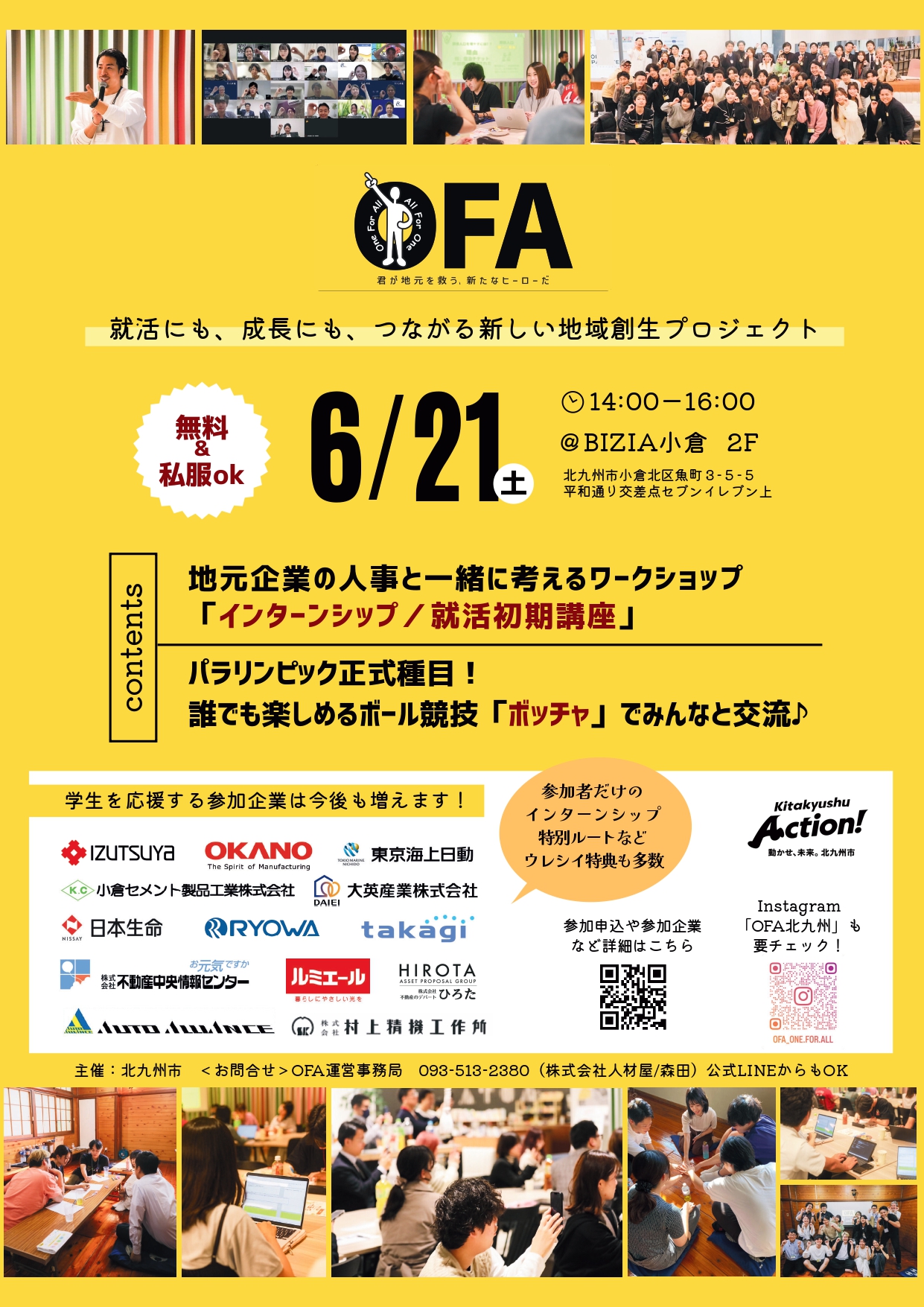 昨年スタートしたOFA。1期生の学生満足度83%のプロジェクトがパワーアップして2期目を迎えます!北九州市や地域の企業と連携したワークショップを通じて、地域のことはもちろん自分のことも再発見できるプログラムです。OFAでは、6月21日(土)のBIZIA小倉(北九州市小倉北区魚町3-5-5平和通り交差点セブンイレブン上)で開催する初回ワークショップ参加者を大募集中です!