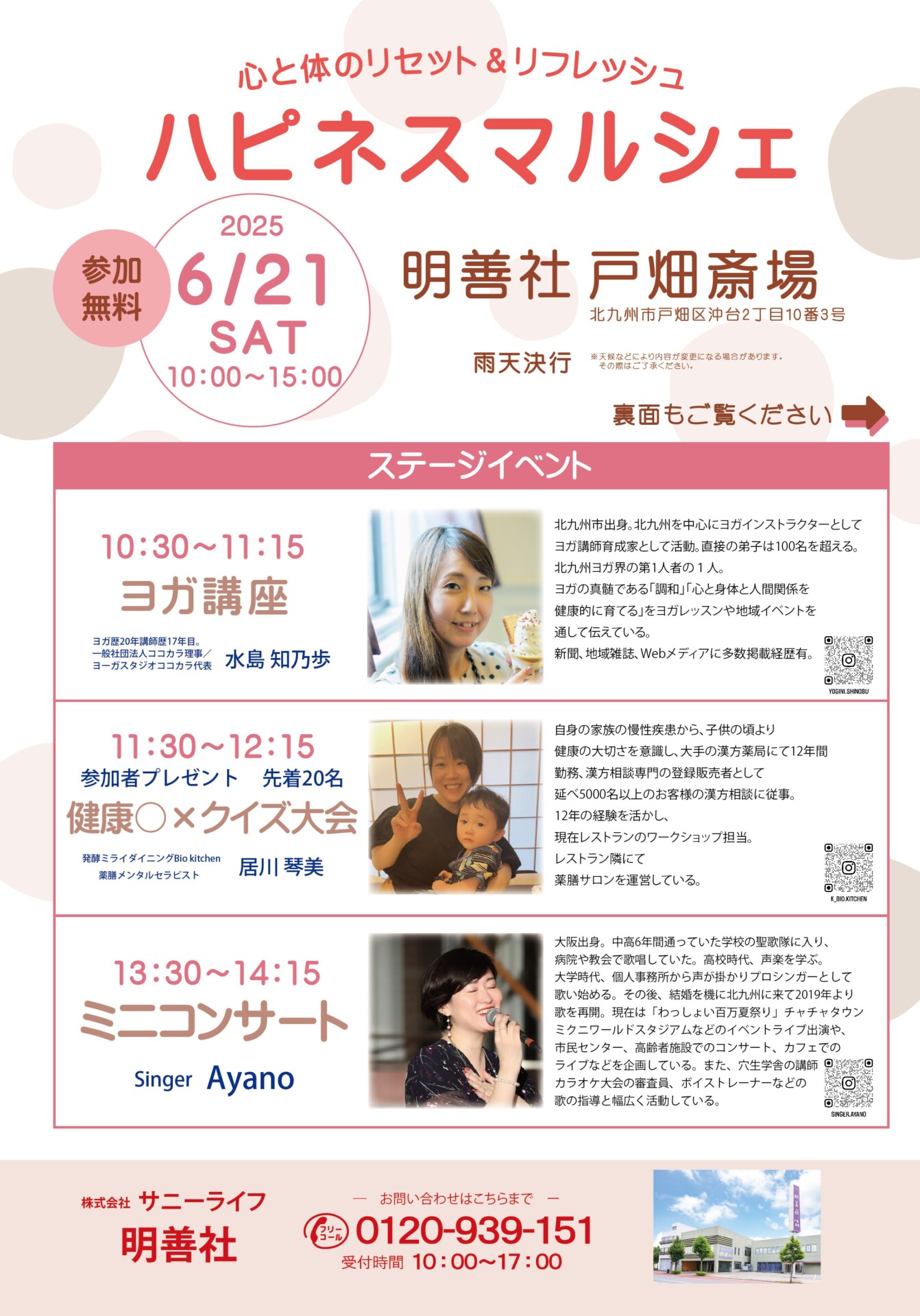 2025年6月21日(土)10:00~15:00、「心と体のリセット&リフレッシュ ハピネスマルシェ(※参加無料)」を開催いたします。