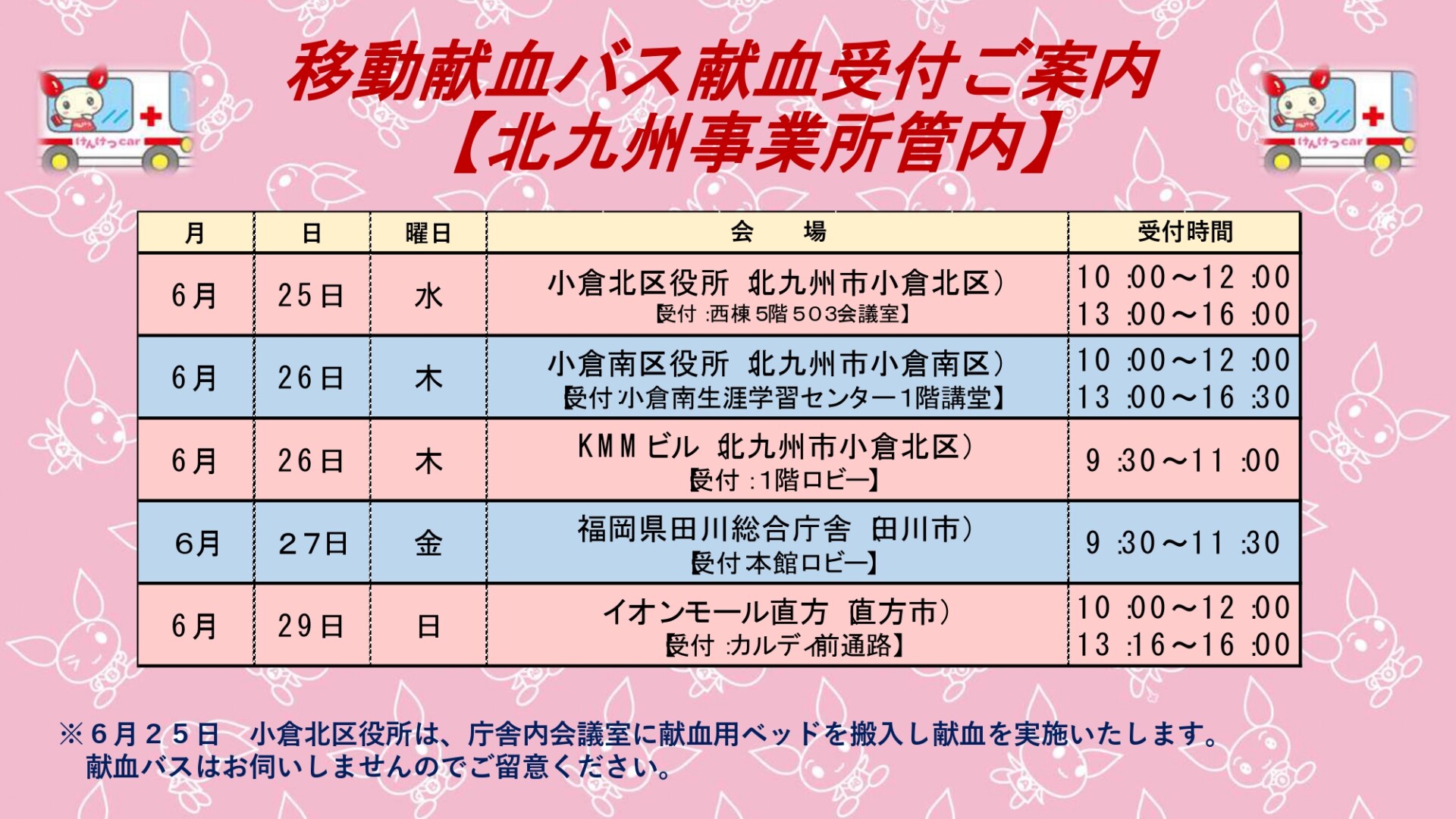 ▶福岡県赤十字血液センター北九州事業所 詳細はこちら
