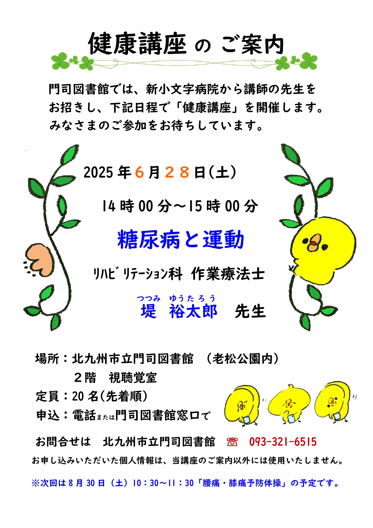 新小文字病院健康講座「糖尿病と運動」/北九州市立門司図書館
