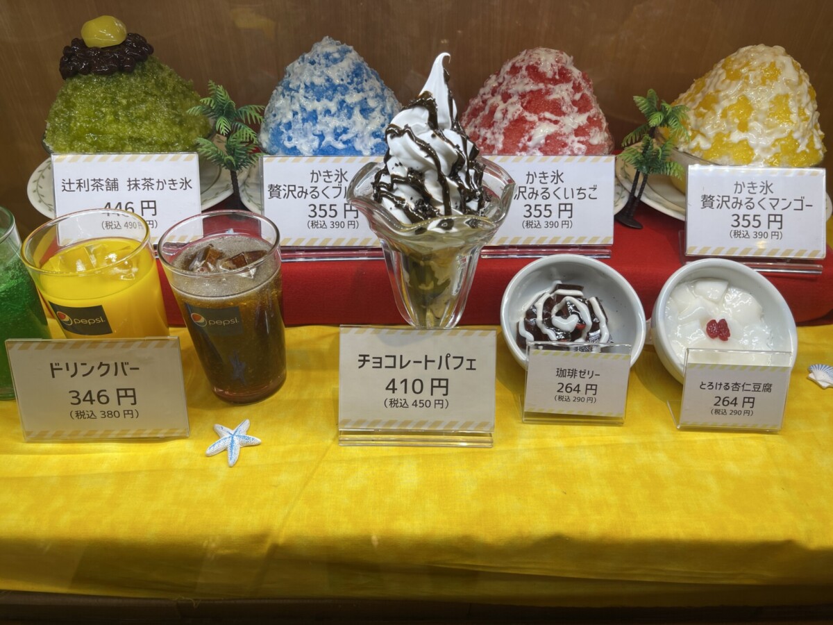 商品がなくなり次第販売を終了するとのことですが、5月下旬に小倉セントシティ店の前を通ると、ショーケースに今回のかき氷のサンプルが飾っていました。