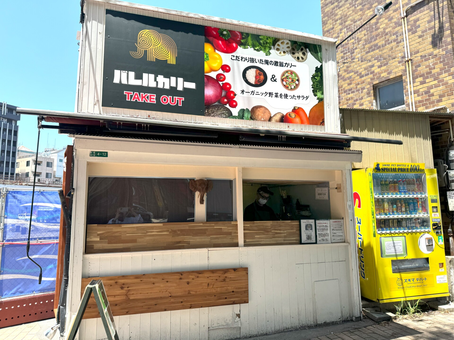 バレルカリーは、旦過市場すぐそばの平和通り沿いにあります。ひと目で分かる特徴は、そのコンパクトな外観。