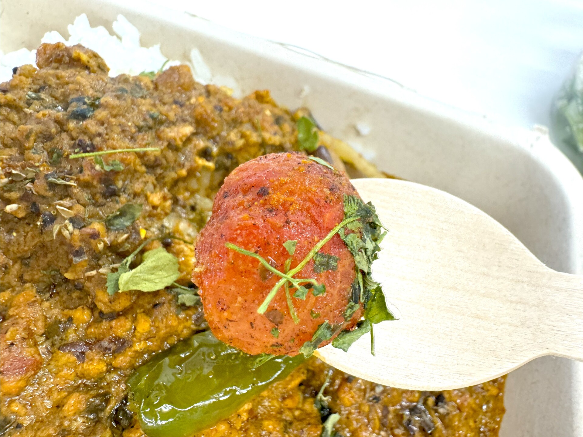 早速テイクアウトして実食。テイクアウトした容器を開けると、ふわりと漂うスパイスの香りが食欲をそそります。