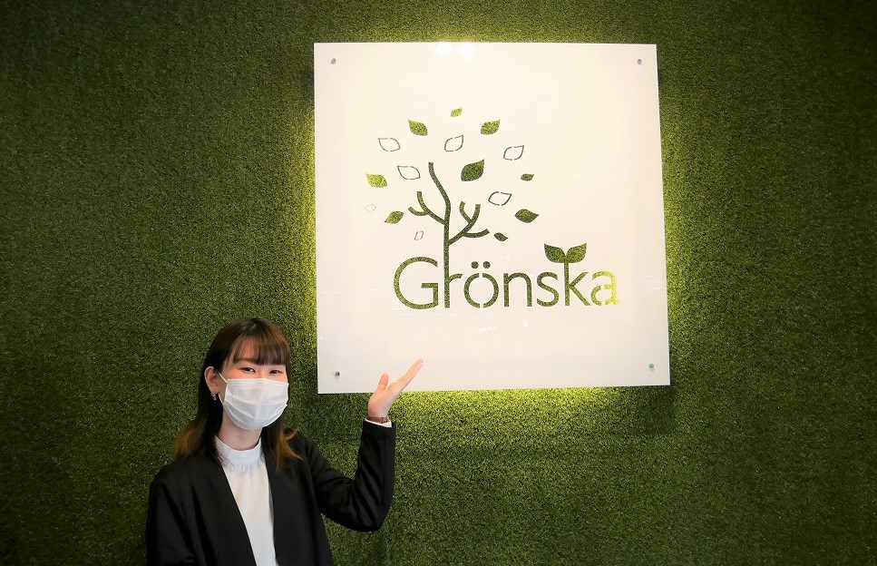 「GRÖNSKA」の名称とロゴを考えたのは、昨年度入社し、今年2年目の若手社員である吉竹さん。大学では建築を学んでいたそうで、ロゴのデザインなどを考えるのは今回が初めての体験だったと言います。