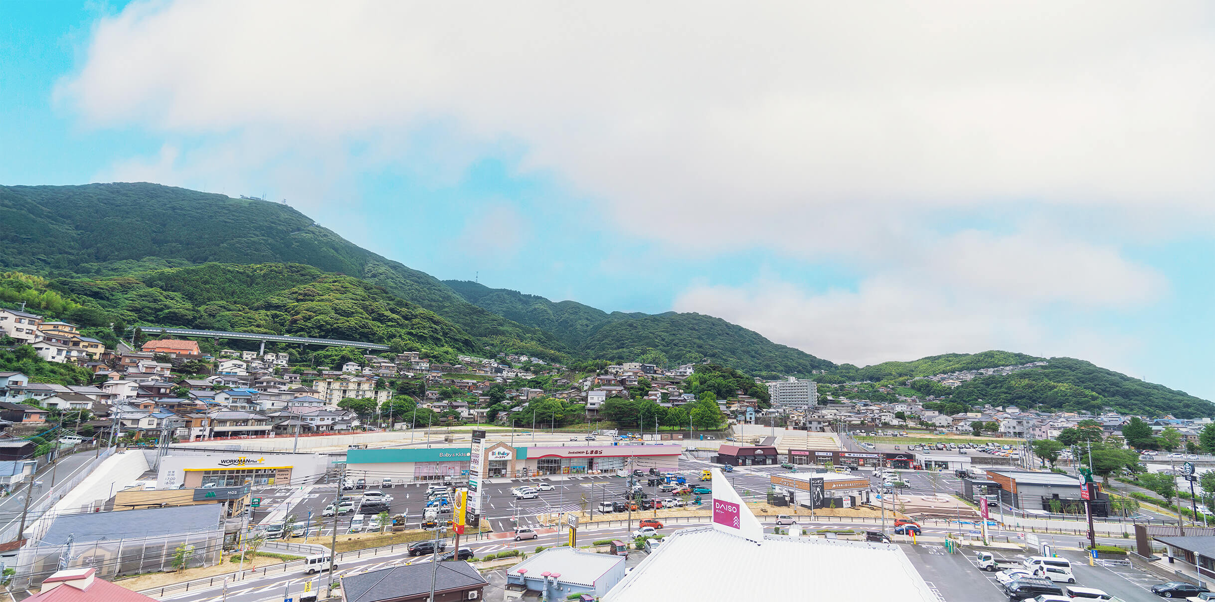 JR八幡駅から南へ約1kmに位置する「皿倉テラス」は、「日々の生活の中で“楽しさ・美味しさ・くつろぎ”に出逢える場所」をコンセプトに誕生。閑静な住宅街や教育・文化施設に囲まれ、買い物や食事が気軽に楽しめるテナントが並びます。