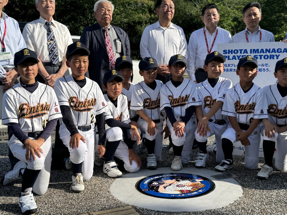 メジャーリーグ・シカゴカブスに所属する今永昇太選手。そんな今永選手の出身校である福岡県立北筑高等学校(北九州市八幡西区)の体育館で6月19日、「デザインマンホール蓋お披露目会」が行われました。