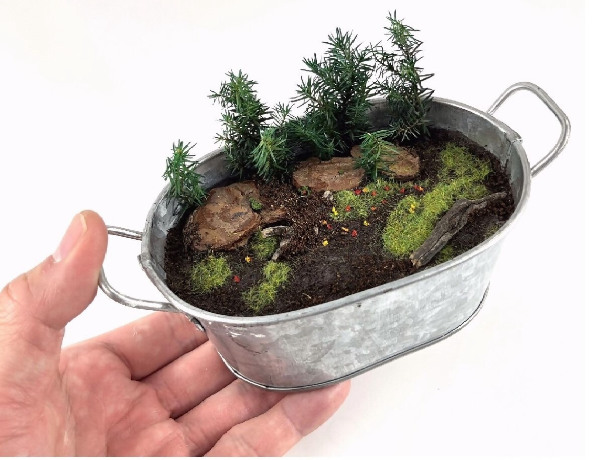 ジオラマ教室では、小さなカップの中に広がる、みどりの平原を作る予定です。