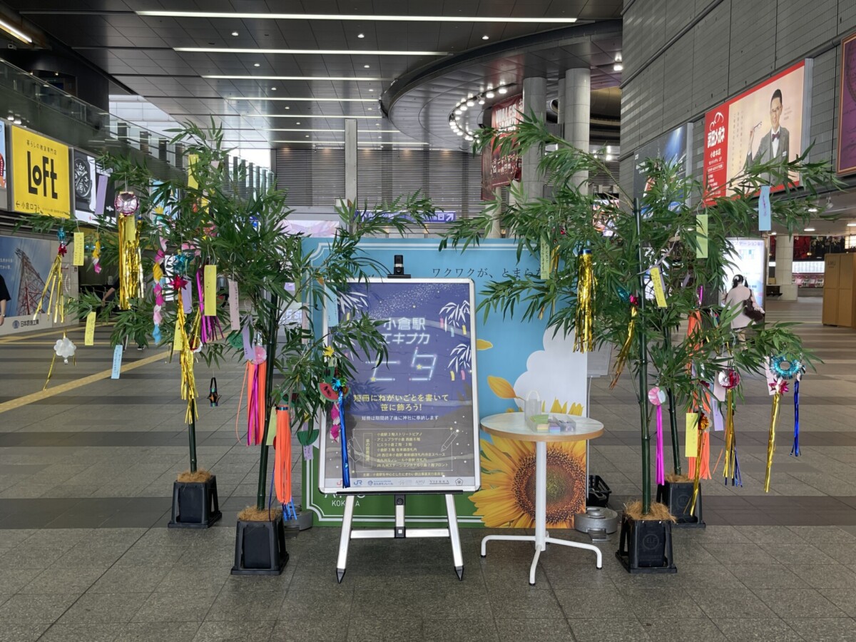 JR小倉駅構内・駅施設各所で現在、「小倉駅エキナカ七夕」を開催中。短冊にねがいごとを書いて飾れるように、七夕飾りを設置しています。