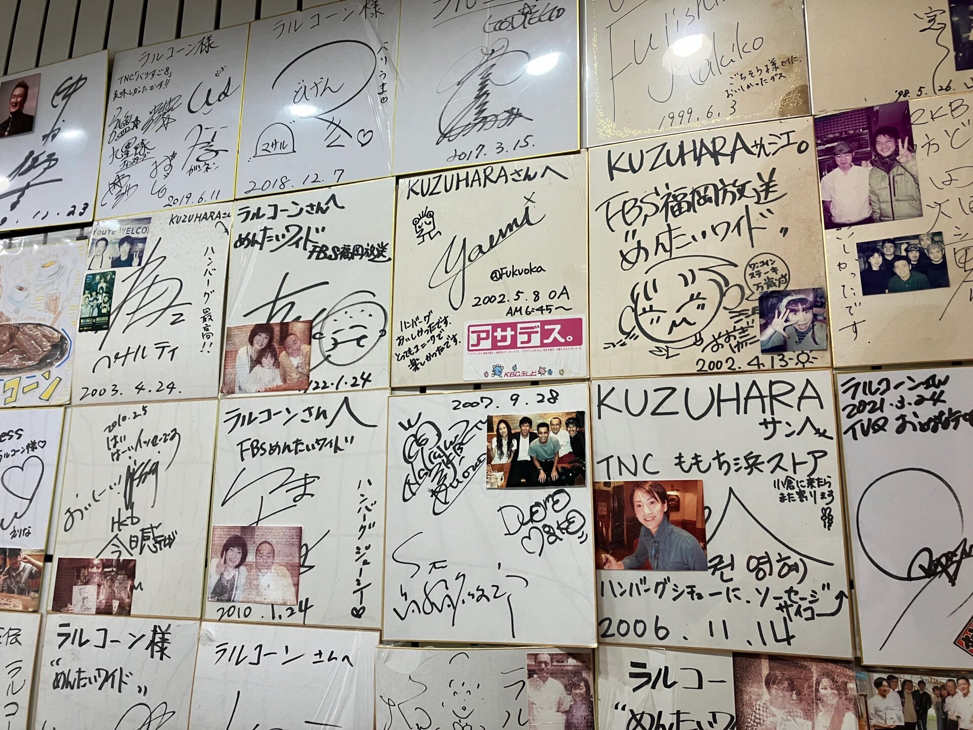 階段を上り切った壁面にはサインがずらりと貼られています。