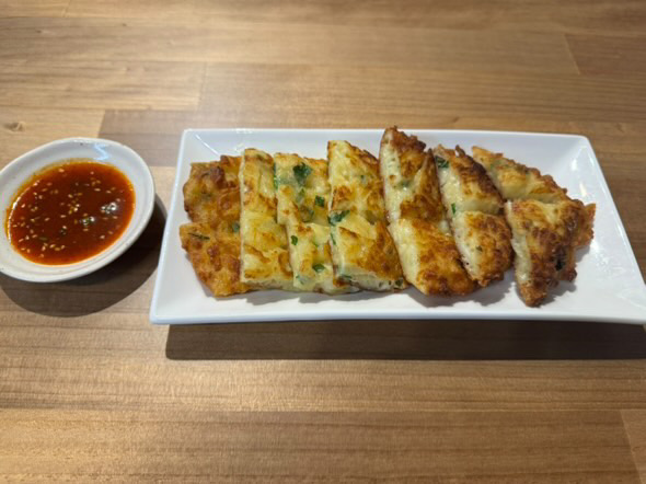 「チーズチヂミ」は、食感が外がカリカリ、中がモチモチだとお客さんに評判だそうです。