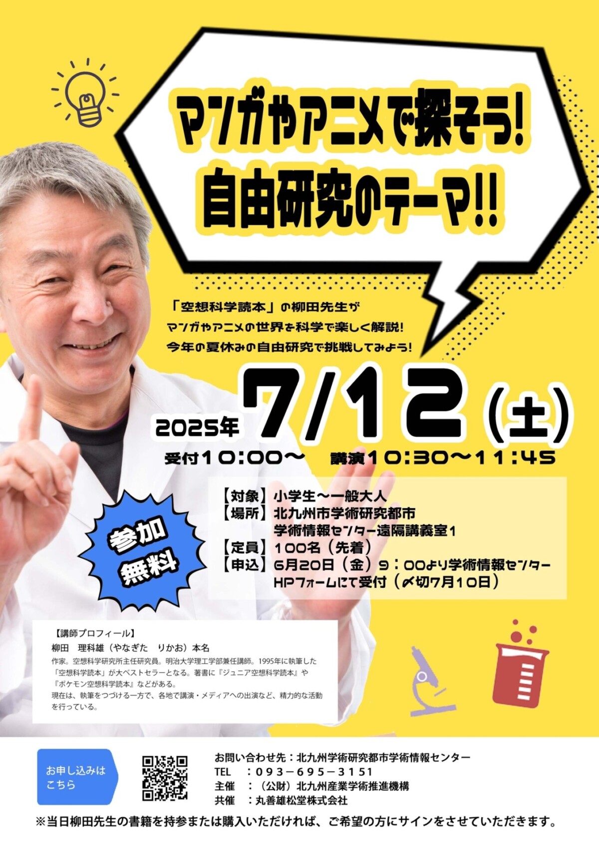 北九州学術研究都市(北九州市若松区ひびきの2-1ほか)で、講演会「マンガやアニメで探そう!自由研究のテーマ」が開催されます。