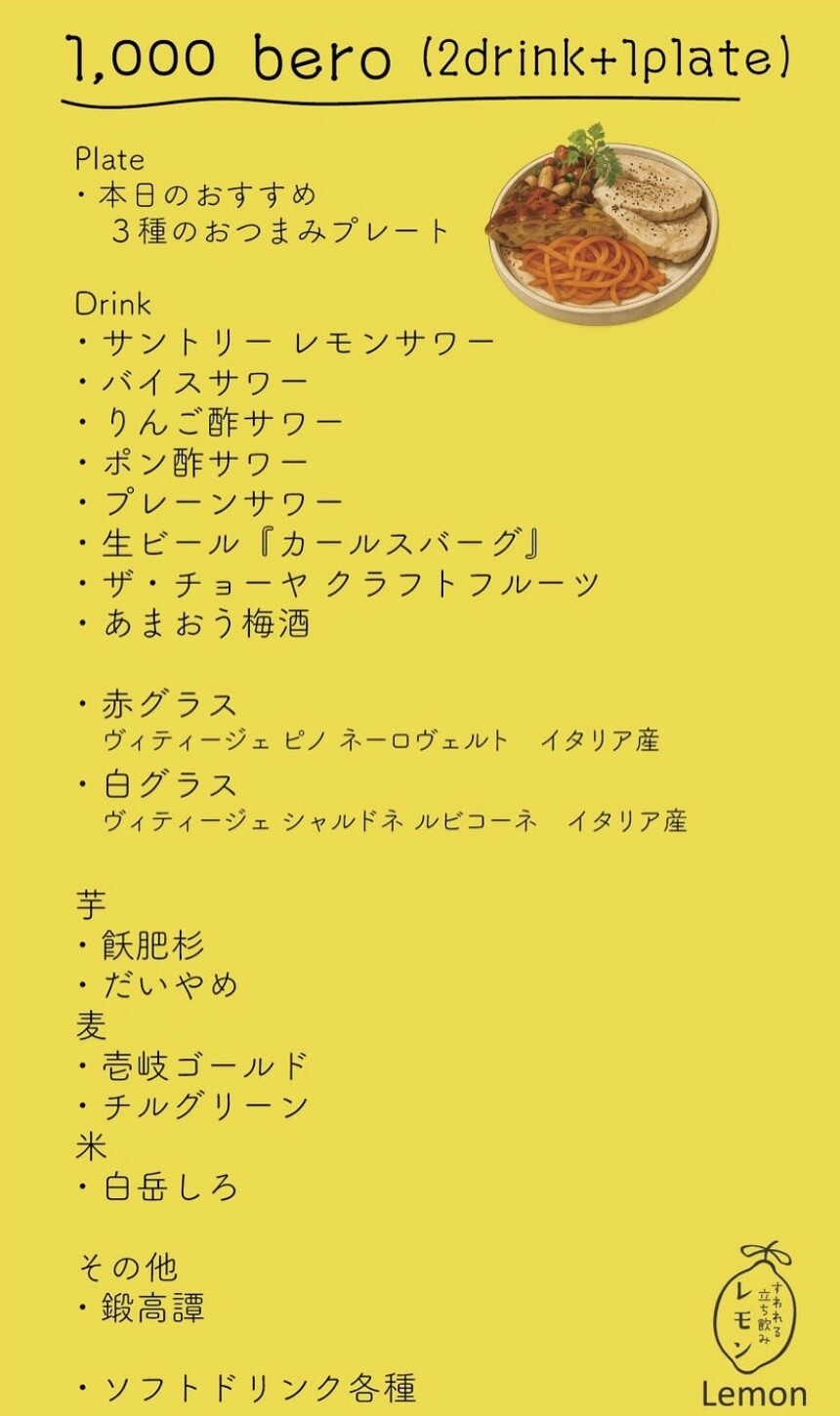 (アイキャッチ画像:すわれる立ち飲み「レモン」の本日のプレート)