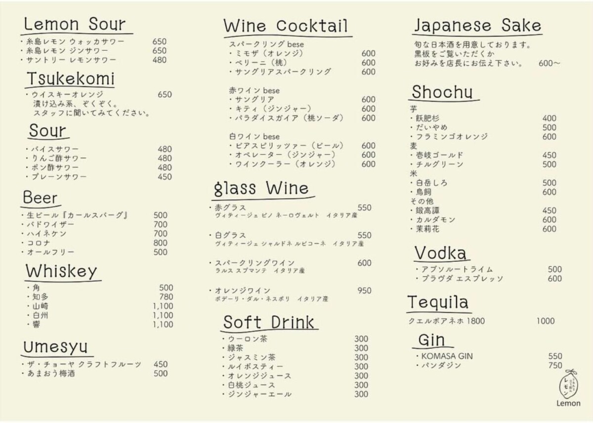 中でも、無農薬糸島産のレモンを漬け込んだ特選の檸檬サワーメニューがおすすめだそうです。