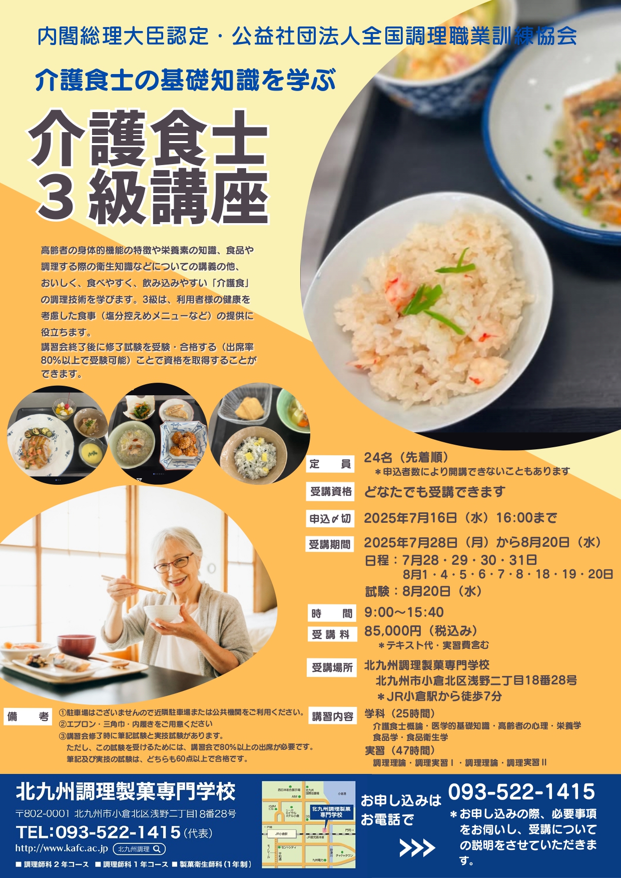 【受講者募集】高齢者の“食”を支えるプロ!<介護食士3級講座> 北九州調理製菓専門学校で実施PR