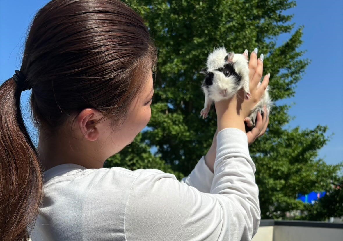 同店では、うさぎ・インコ・フェレット・モルモット・スキニーギニアピッグ・パンダマウス・ハムスター・ハリネズミ・アフリカヤマネ・モモンガなど、10種類以上の小動物たちと直接触れ合うことができます。