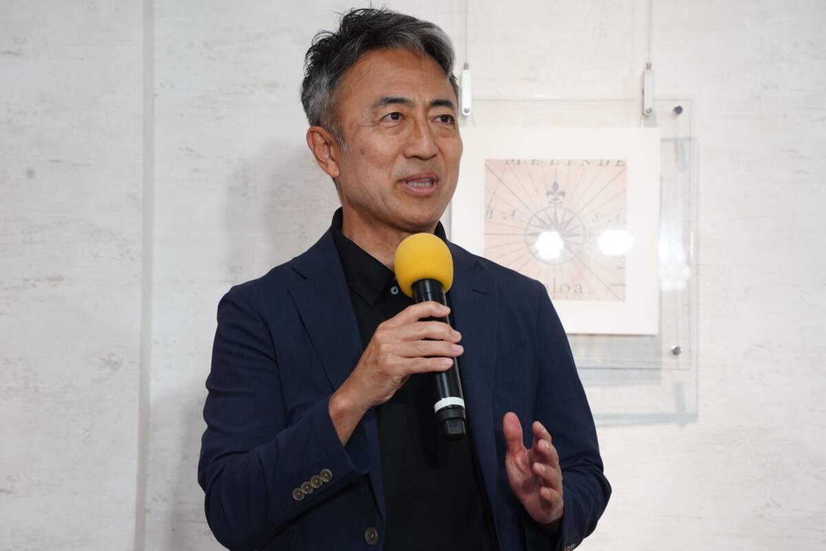 今回のコラボレーションについて、「まさか最後に地図柄が選ばれると思っておらず、嬉しいです。ギラヴァンツに誇りを持っているので、選手の皆さんに頑張ってほしい」と話し、「ぜひ勝利を掴み取ってほしい。監督!よろしくお願いします」と熱い言葉を増本浩平監督に伝えていました。