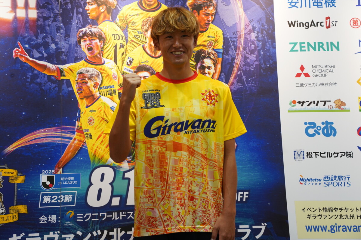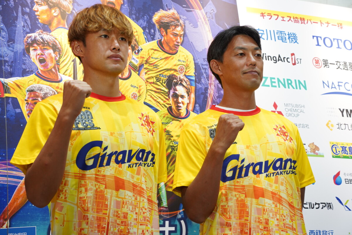 お披露目会では、昨年同様にギラヴァンツ北九州キャプテンの井澤春輝選手がギラフェスオリジナルシャツを着用して登場しました。