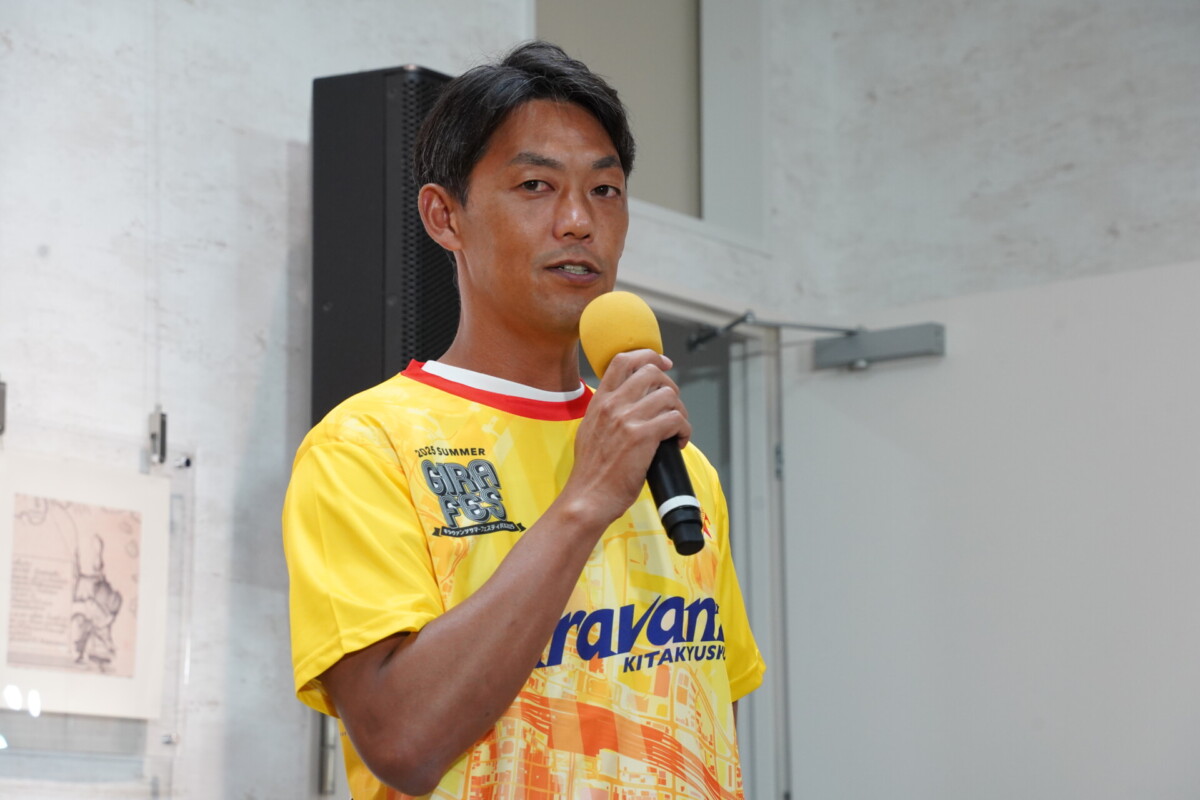 今シーズンをもって最後となるギラフェス、そして今回のギラフェスオリジナルシャツについて、ギラヴァンツ北九州の石田真一社長と増本浩平監督からお話がありました。