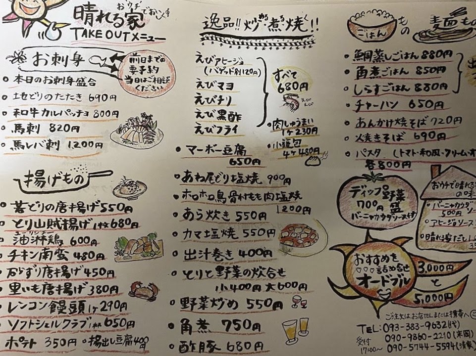 和洋中なんでもあり!?守恒の居酒屋がテイクアウトを開始【小倉南区/晴れる家】