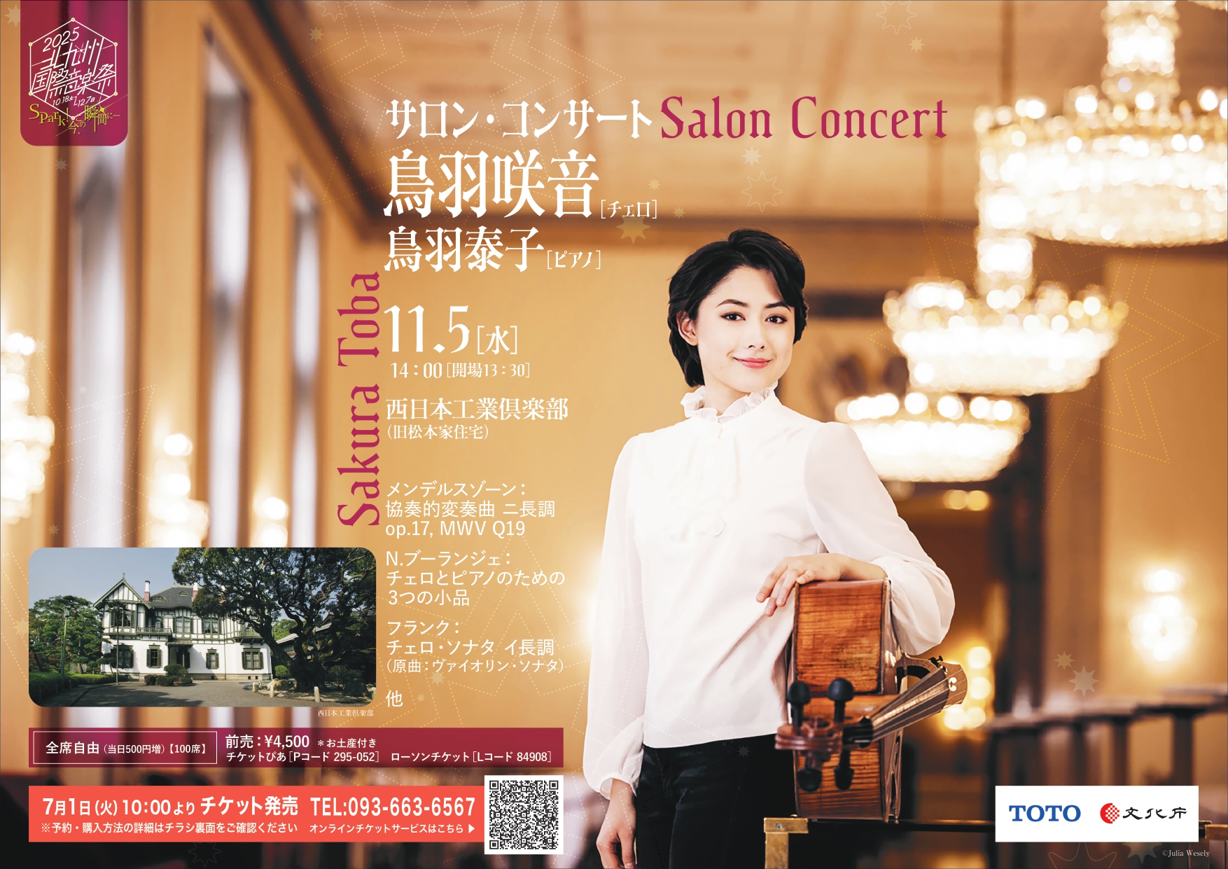 今まさに大注目のチェロ奏者鳥羽咲音北九州国際音楽祭に出演!美しい洋館と庭園を舞台に、演奏家の息遣いまで聞こえるような小さな空間で、特別なひとときをお楽しみください。