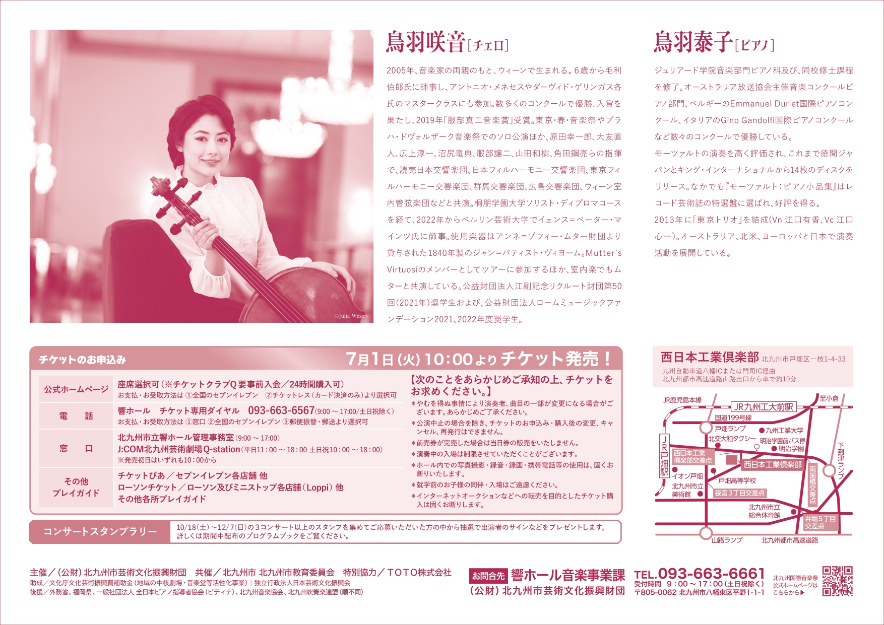 残席わずか!【北九州国際音楽祭】サロン・コンサート鳥羽咲音:チェロ 鳥羽泰子:ピアノ/北九州市立響ホール