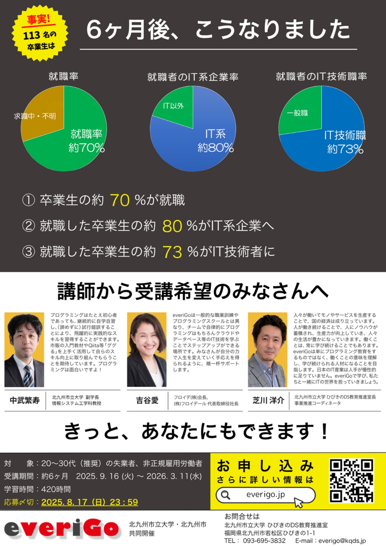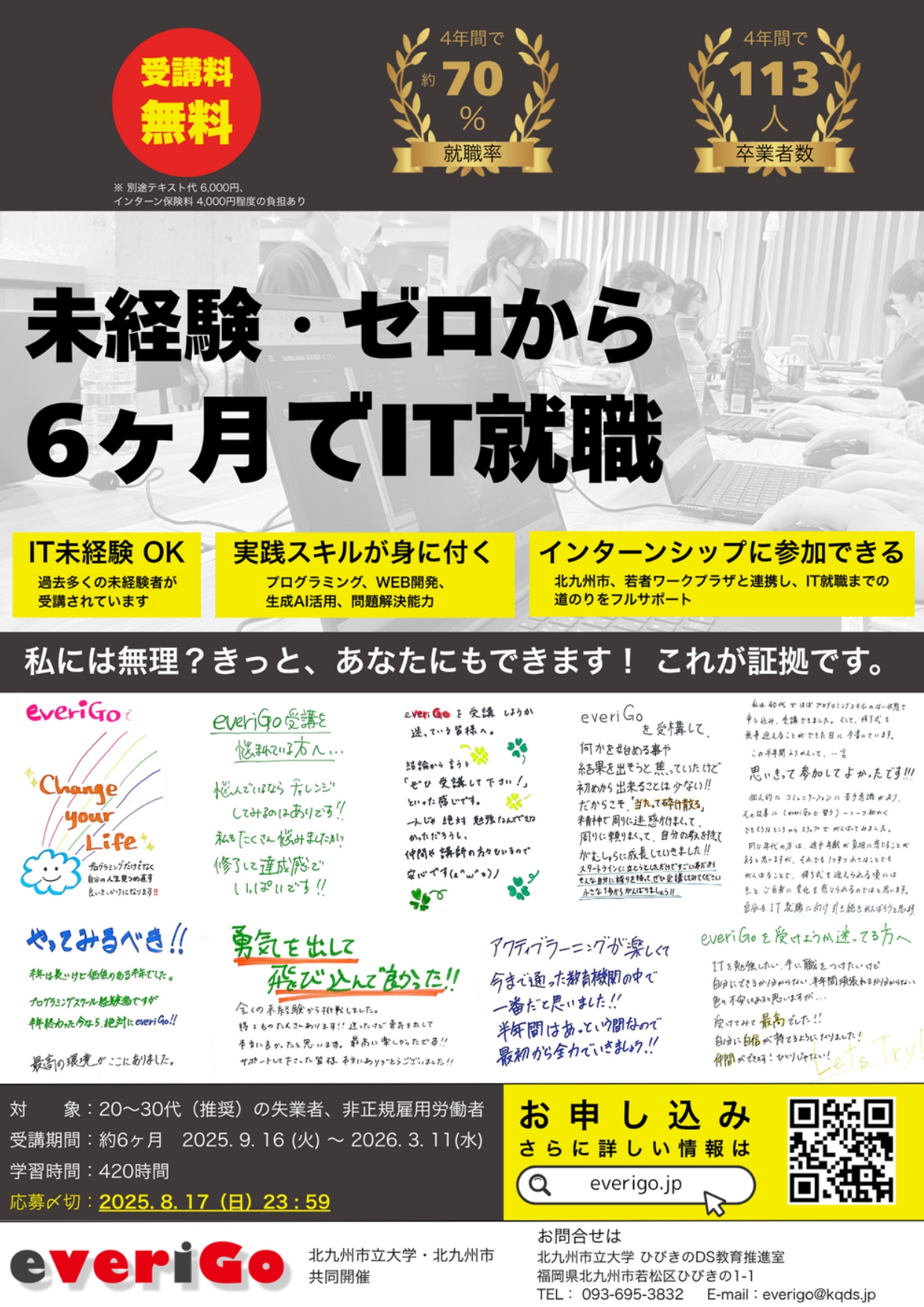 【受講料無料】未経験・ゼロから6ヶ月でIT就職<everiGo(エブリゴー)>/北九州市立大学ひびきのDS教育推進室