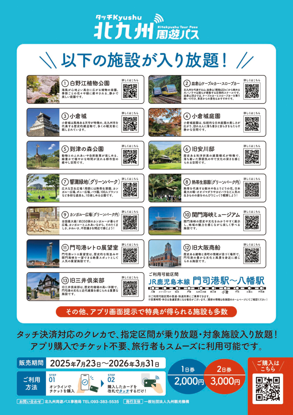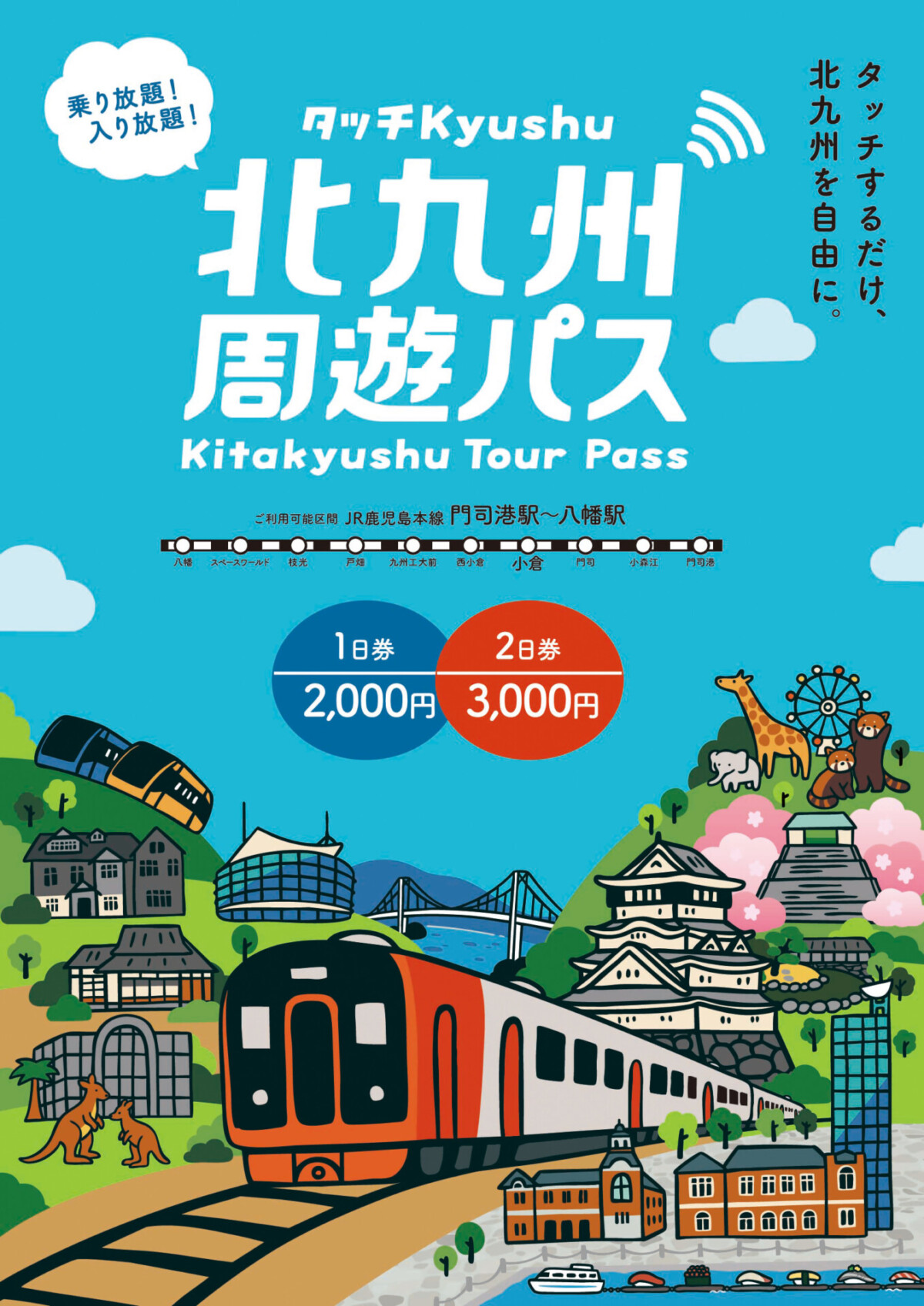 JR九州の指定区間が乗り放題&対象の観光施設が入り放題となる「北九州周遊パス~タッチKyushu~」の販売が開始しています。