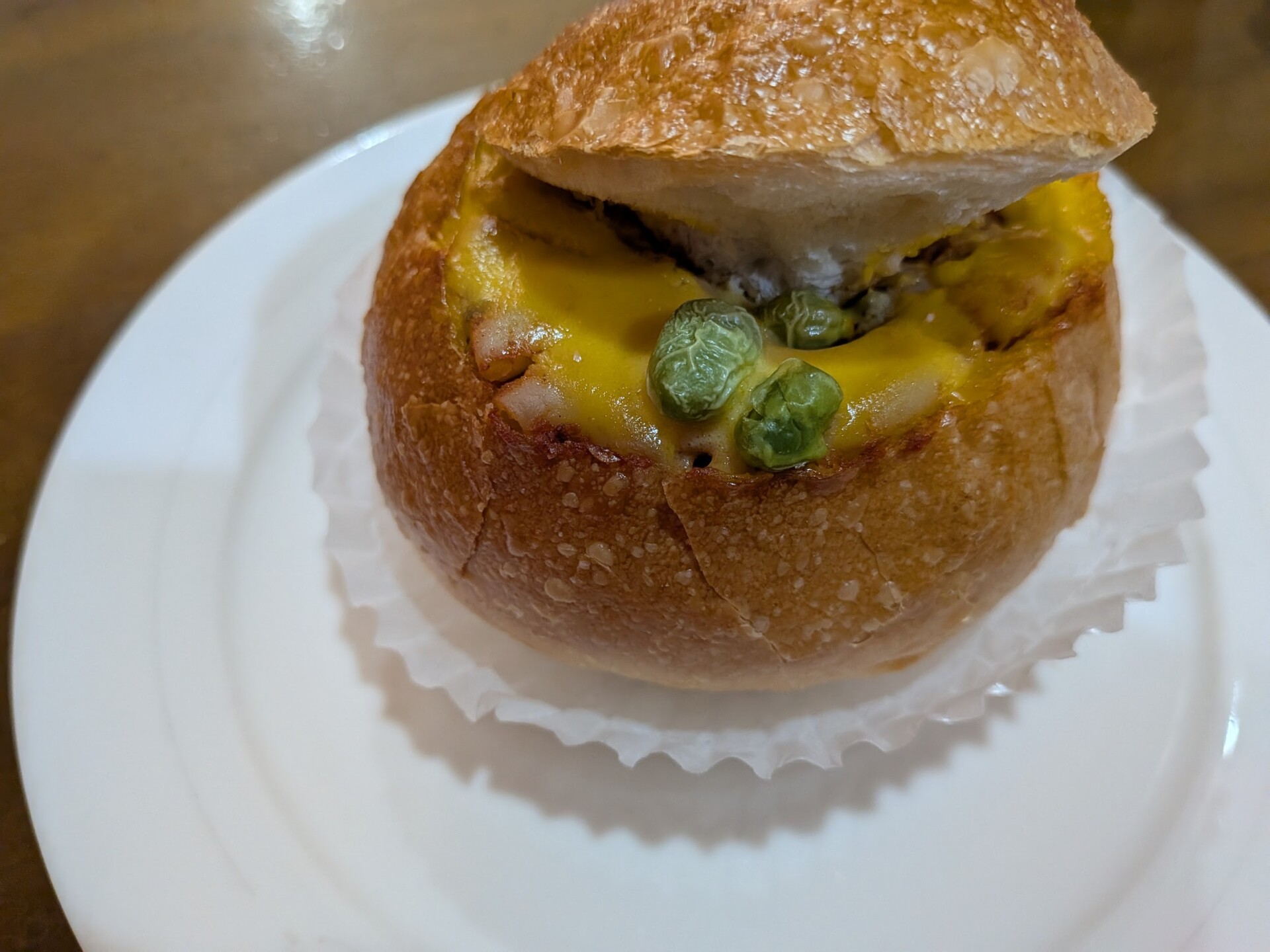 この夏新登場したフランスポット(370円)も注目です。フランスパンを器にして、枝豆とソースがふたの下からのぞいています。
