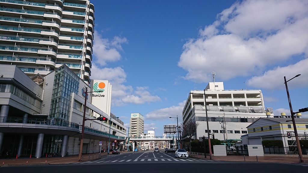 上の写真は中川通りを写したものですが、目指すデザインマンホールは、写真左側の歩道に5つ、右側の歩道に1つあります。写真左側のマンホールから順に紹介します。